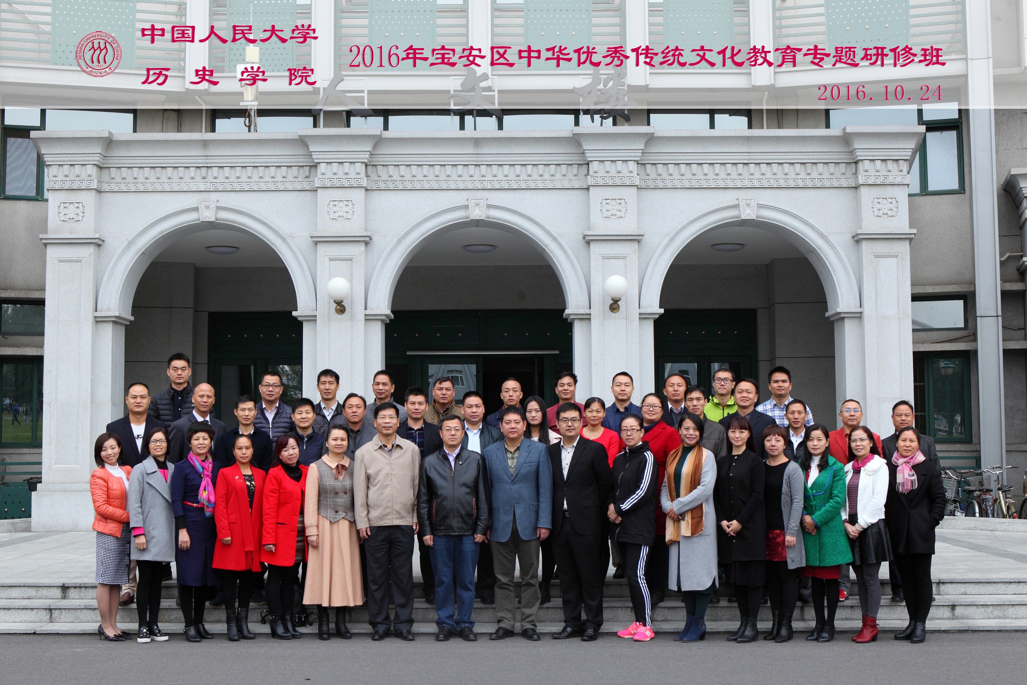 2016年10月23日-29日,深圳市宝安区中华优秀传统文化教育专题研修在beat365亚洲版官网顺利举办, 这次中华优秀传统文化专题研修培训是由beat365亚洲版官网主办,深圳市十得文化传播有限公司协办。10月24日8::30,beat365亚洲版官网人文楼三楼的beat365亚洲版官网会议室里济济一堂,宝安区中华优秀传统文化教育专题研修班一行40人在这里举行了简短而隆重的开班仪式。历史系主任王大庆老师致欢迎词,向学员们介绍了beat365亚洲版官网和历史系的情况,并对传统文化的弘扬提出了自己的看法,鼓励来自南国的从事基础教育的老师们,利用这次机会好好充电,储蓄知识,激活思维。宝安区教育发展事务中心的周焕南副主任语重心长地对学员们提出了学习要求,期望大家安心学习,开心学习,学有所获。历史系副主任姜萌老师主持开办仪式,并向大家介绍了培训班的相关情况。