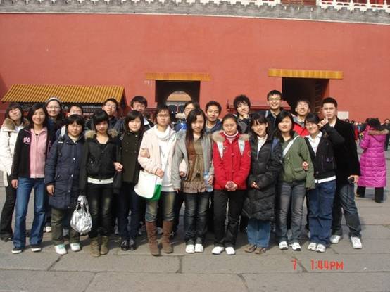 3)同学们组成小团体参观故宫。在研究生的引导下对故宫的历史渊源及故宫文物细致了解。