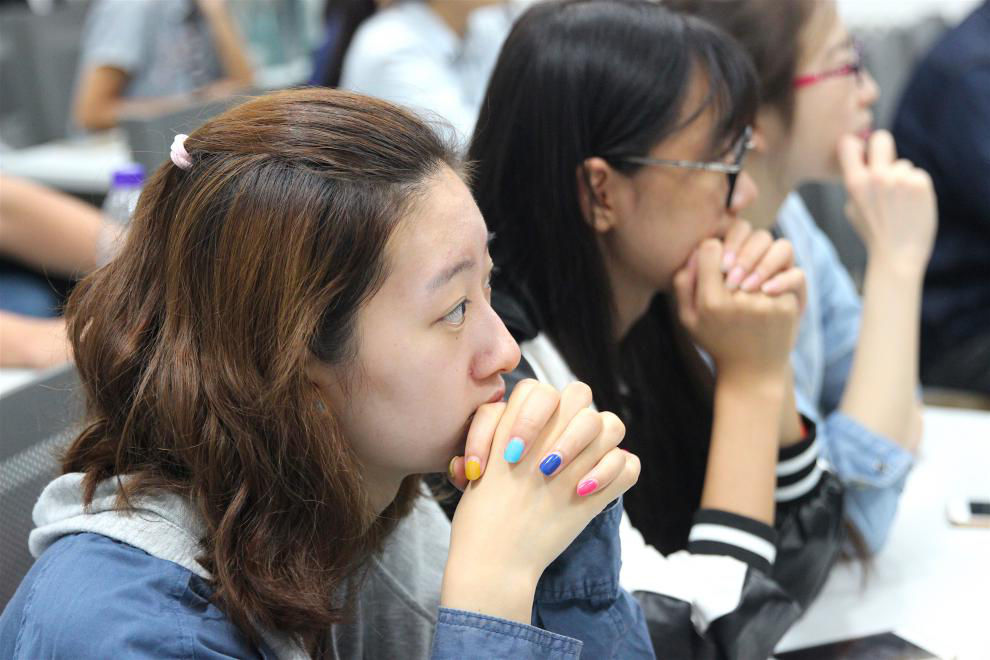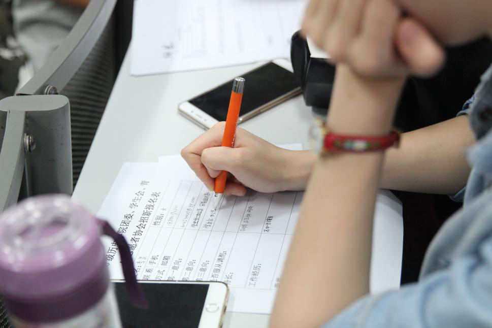 团学青绎各部门部长、副部长对自己部门成员、部门职能、运作要求等内容进行了介绍。大家都进行了充分的准备,为吸引干事使出了“洪荒之力”:精美的PPT、花样百出的视频设计、稳重干练的正装穿着……各部门负责人用他们新奇的想法和对部门的热爱为新生们描绘了一幅幅生动的图景。十一个部门的二十余位负责人都完成了各自的部门介绍,16级的新生们也都在志愿填报表上慎重写下了自己最终的选择。