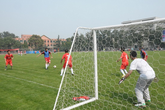上半场结束,我方已凭借务实的4粒进球已经拉开了比分差距。稍事休息后,下半场比赛打响,我方队员依旧表现神勇。刚一开场,杜鹏就为我们表演了一次纵贯全场的单刀突入对方门前,轻轻一点,把球送入球门。对方也企图追赶比分,但无奈我方门将马志国准确的预判和奋力扑救,他们虽然有几次精彩的射门但始终无法进球。
