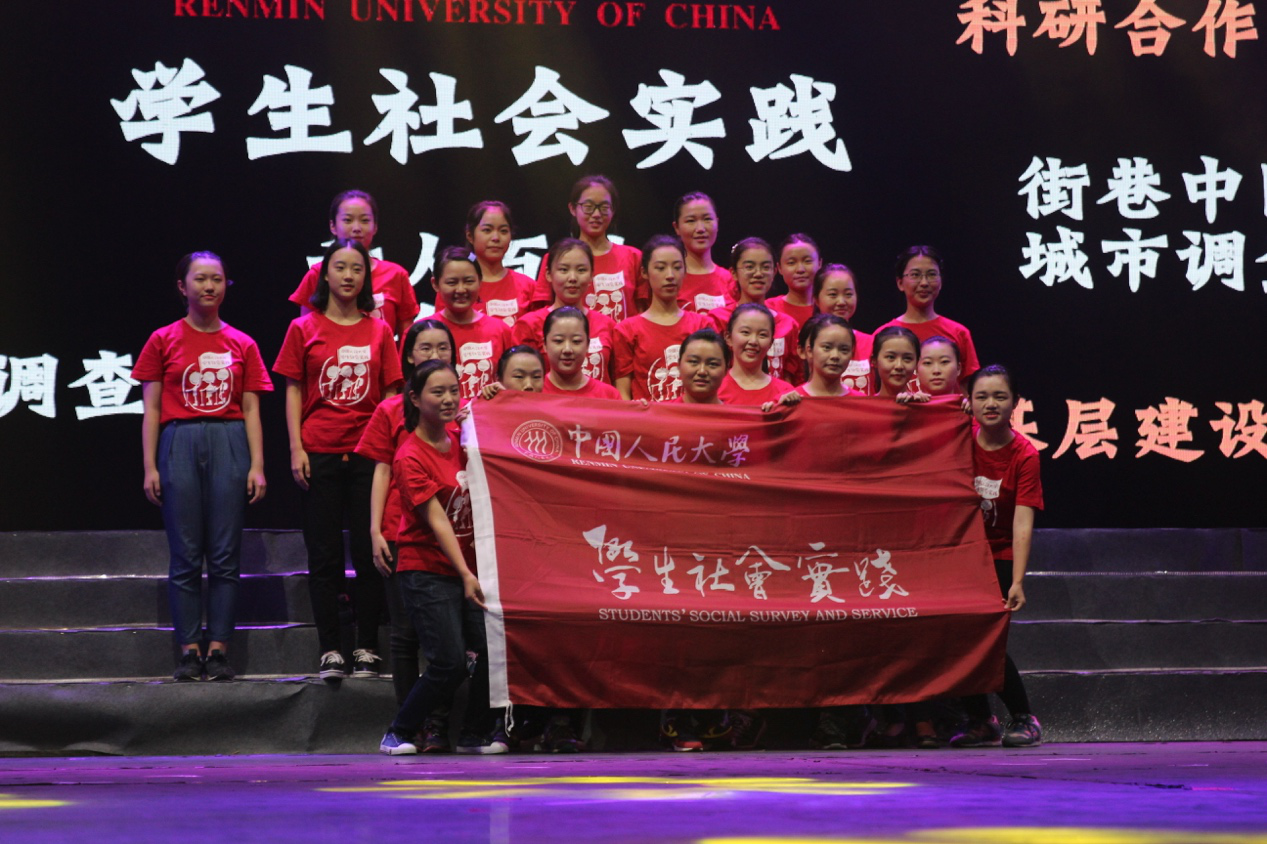 beat365大一新生刘歌风与孙雨彤同学参加歌曲《在希望的田野上》演出;演员们身着红色“千百”文化衫,且歌且舞,展现人大学子参加关心“三农”重要国策的人大特色社会实践项目“千人百村”的风采。