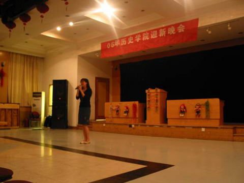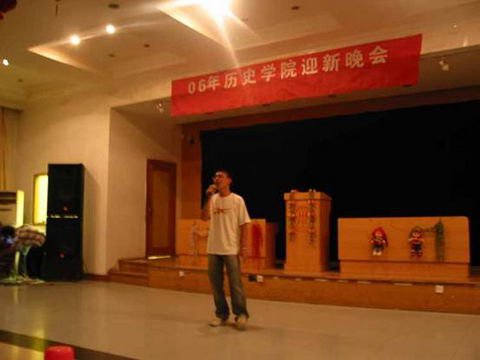 看着大一同学们尽情的展现自己的才艺,大二大三的师兄师姐们也按捺不住喜悦的心情,纷纷走上舞台,为新同学表达自己的关怀之情。04级刘美慧同学表演的卡笛独奏《小夜曲》清新明快,婉转悠扬。05级杨小光同学演唱的歌曲《月半弯》更是悦耳动听,感人肺腑,把大会推向了又一个高潮!还有很多同学即兴表演,展现了他们多方面的才能。