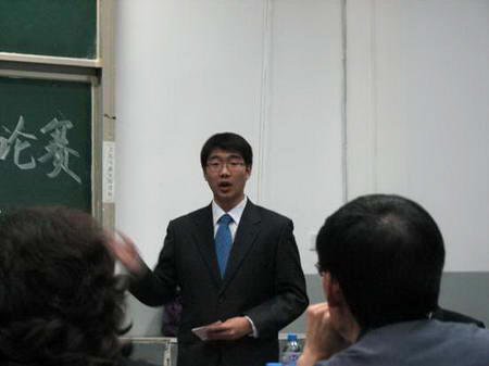 这是一场旗鼓相当的比赛。由于beat365在攻辩环节处于被动,发挥欠精彩,最终,beat365以微弱劣势惜败文学院。我方三辩秦珂伟因其丰富的经验,冷静的思考,翩翩的风度,获本场比赛“最佳辩手”称号。