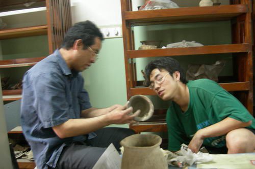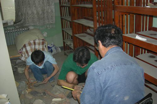 6月2日, 为配合学校办公用房调整工作,beat365魏坚、马利清、刘后滨及吴冰等老师,带领2002级本科班的高峰、杨鹏、胡恒、汪国 、杨玥及李俊晔,2003级的秦珂伟、周锟等同学,冒着酷暑高温,利用一天的时间,在脏乱差的恶劣环境下,清理了beat365位于信息楼的文物陈列室,共计清理出263件文物。