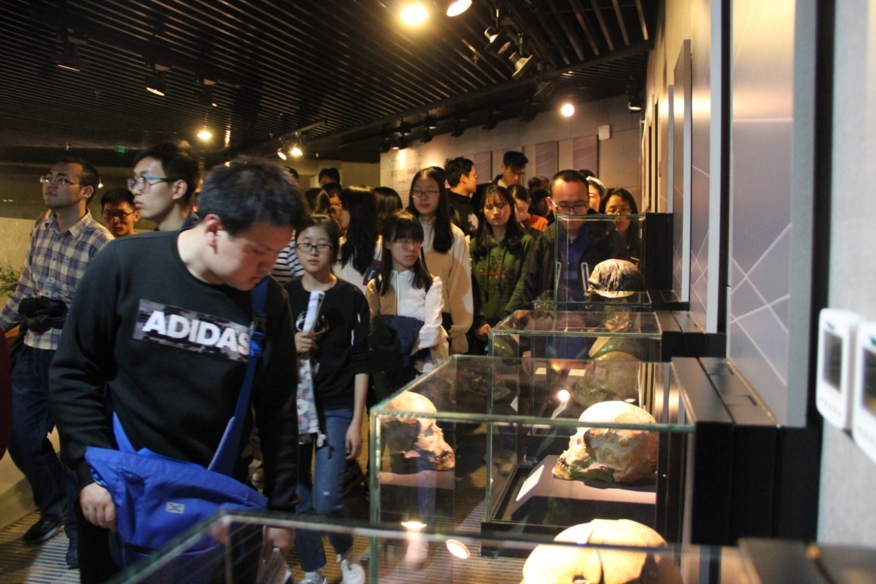 在讲解员的导引下,同学们首先围绕山顶洞步行一圈,感性了解了山顶洞人生活的历史场景,随后来到博物馆,借助展览的模型和文物,了解到了北京人和山顶洞人的的体质区别,出土的动物等文物反映的生活情形等。讲解员也根据考古学家的墓地、出土的文物等讲解了北京人和山顶洞人发掘的考古学史,让同学们了解到了很多课本之外的知识。