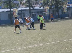 9月28日中午12:00,beat365亚洲版官网与信息管理学院的季军争夺赛在同学们的热情期盼中拉开了帷幕。 beat365亚洲版官网在上半场一度处于低迷状态,在对方后卫的严防下,无法展开强有力的进攻,并且在对方以3球领先的情况下, 仍无法组织出漂亮的反攻。但在上半场进行到38分钟